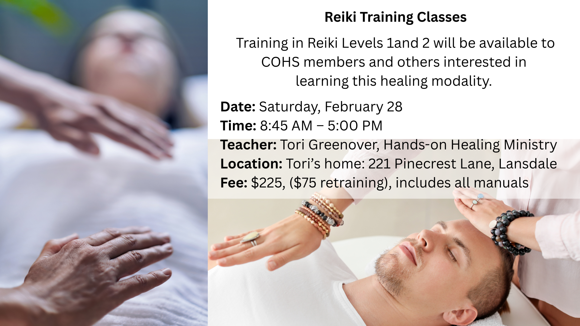 If you are Interested in Reiki Training Classes, contact Tori by phone: 215.350.2140 or Email.