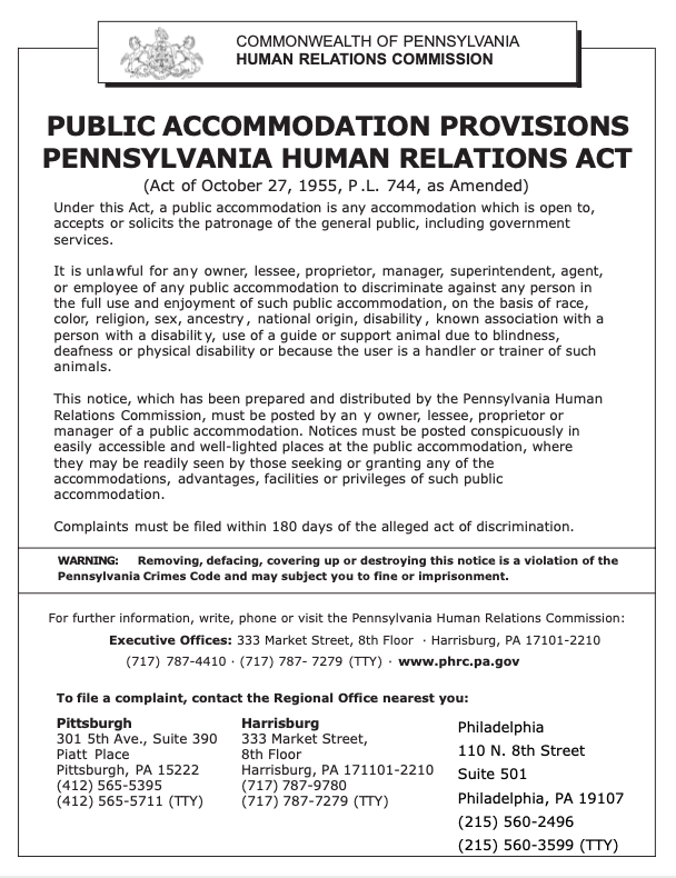 PA Public Accommodations - Download HERE