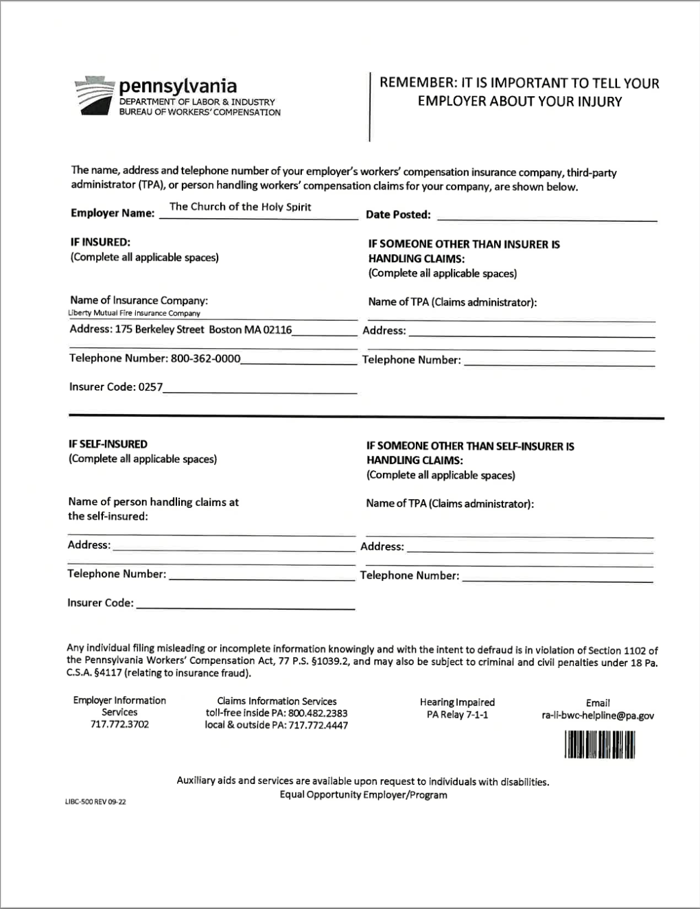 Workers Comp Information - Download HERE